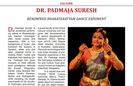 Dr. Padmaja Suresh, a leading Bharatanatyam dancer and a prominent researcher of Natya and Tantra has been recently conferred the title ‘Karnataka Kalashri’, one of the highest civilian awards of the Karnataka state government’s Karnataka Sangeeta Nritya Academy .